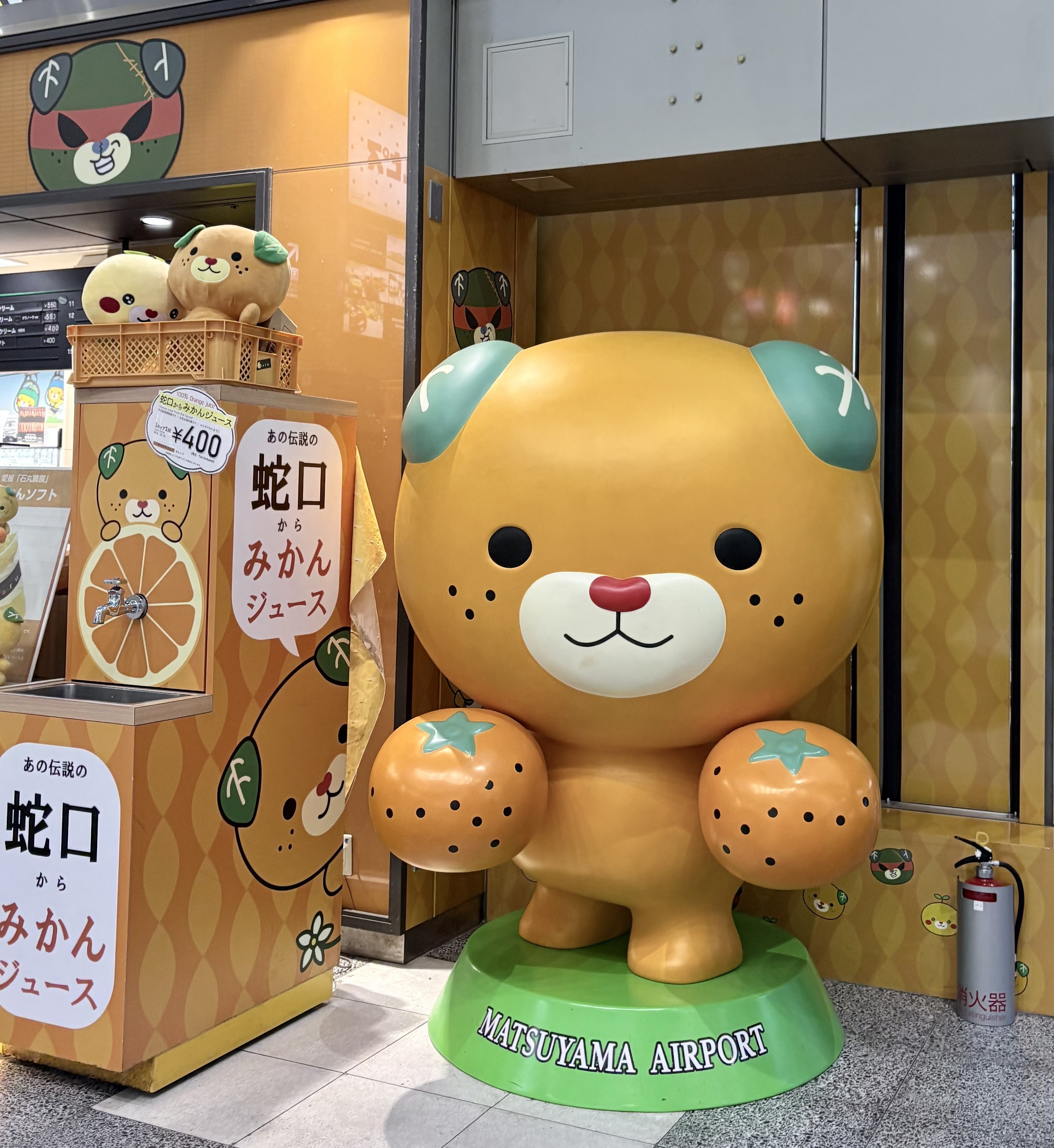 まず,仙台から飛行機を乗り継いで松山に到着!すると目の前にみきゃんが!とってもかわいくお出迎えしてくれました~